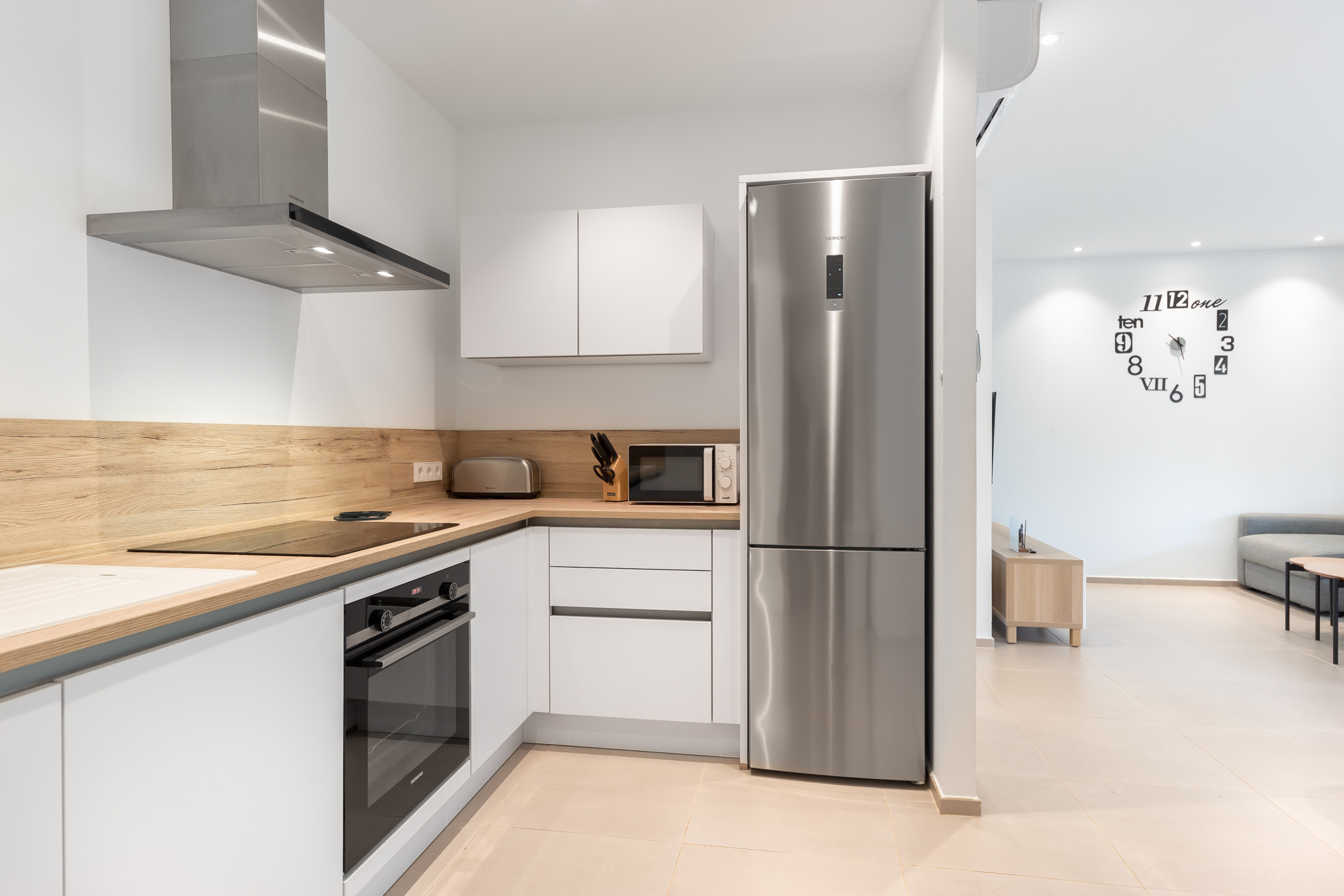 De open keuken, met inductie kookplaat, is uitgerust met een koelkast, microgolf, oven, vriezer, wasmachine, vaatwasmachine, servies/bestek, keukengerei, Nespresso koffiezetapparaat, broodrooster, waterkoker en citruspers, ....