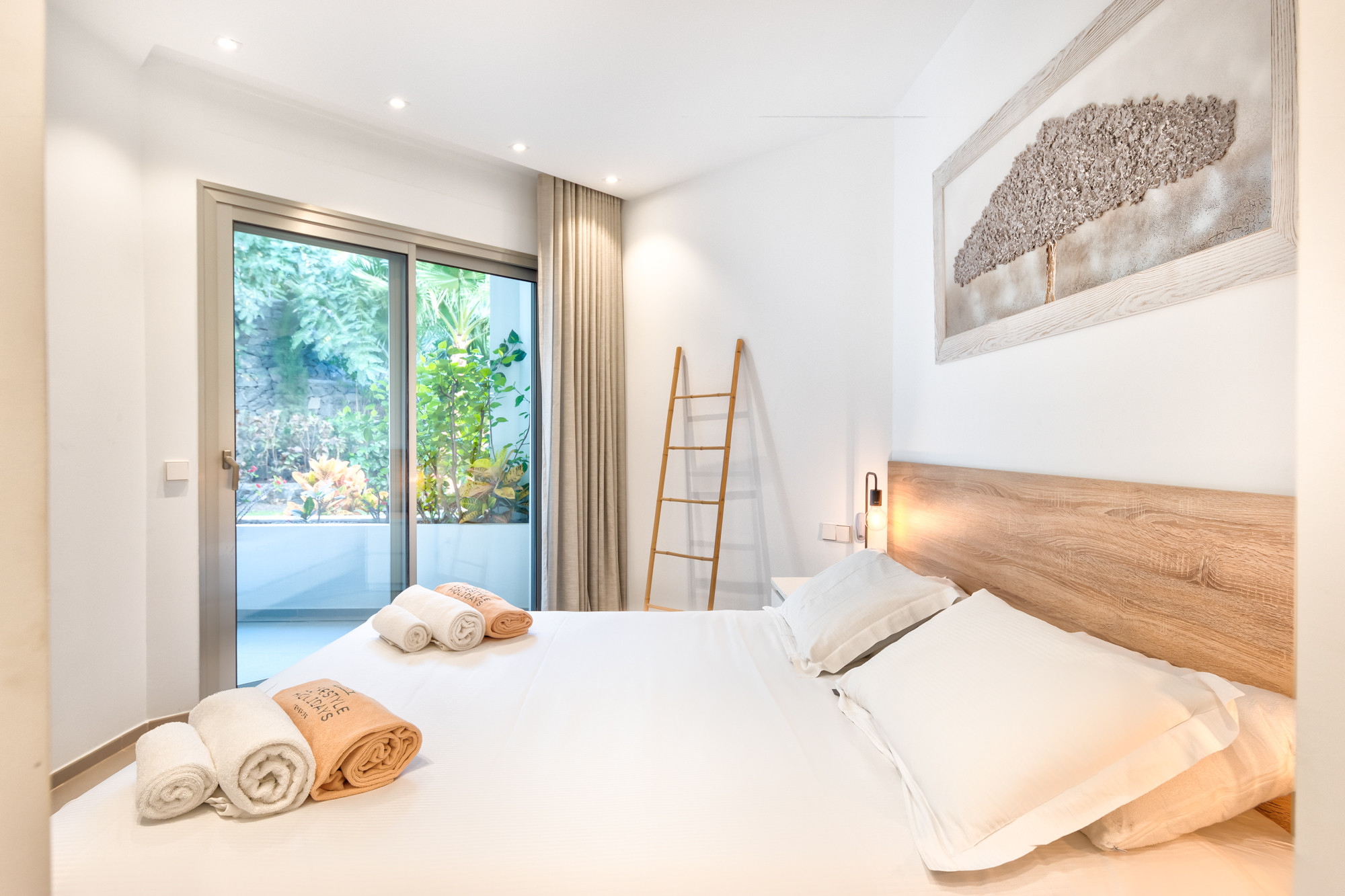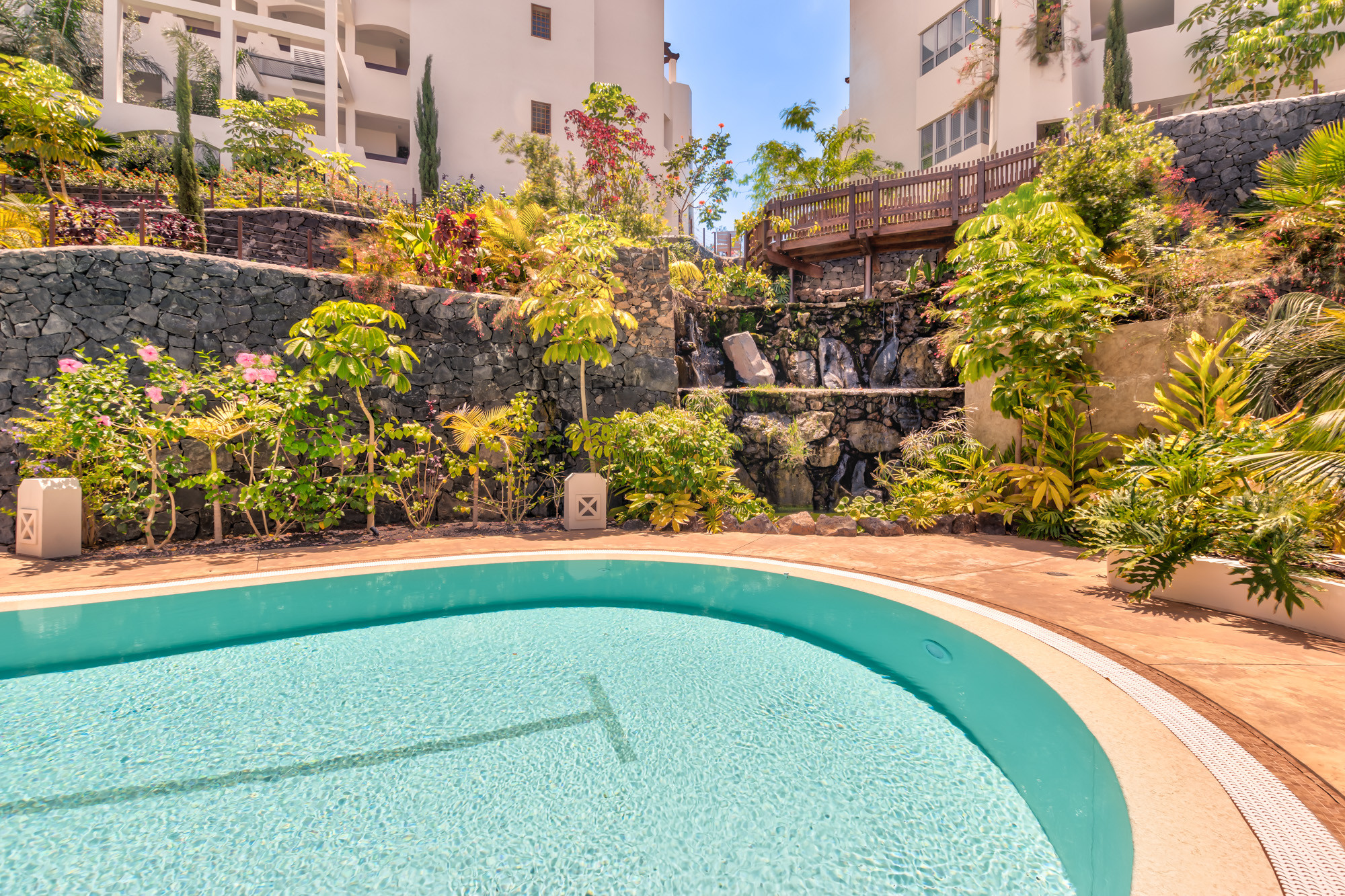 In "Jardines de los Menceyes” aan de ingang van Palm-Mar, kunt u genieten van subtropische tuinen, watervallen en twee zwembaden waarvan één en het kinderbad verwarmd zijn, een ruime solarium met ligbedden en parasols. "Jardines de los Menceyes” heeft een volledig uitgeruste fitnessruimte met Technogym toestellen. Op tien minuten wandelen bevind zich het winkel- en gastronomisch centrum en het zwarte natuurstrand „la Arenita“